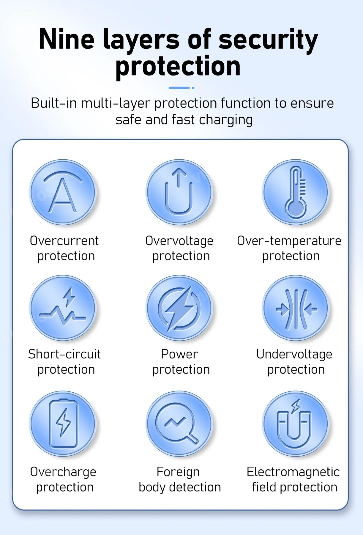 With intelligent protection technology and built-in intelligent chip, it provides over-voltage protection, over-current protection, short-circuit protection and over-heat protection to ensure absolutely safe and stable charging experience.