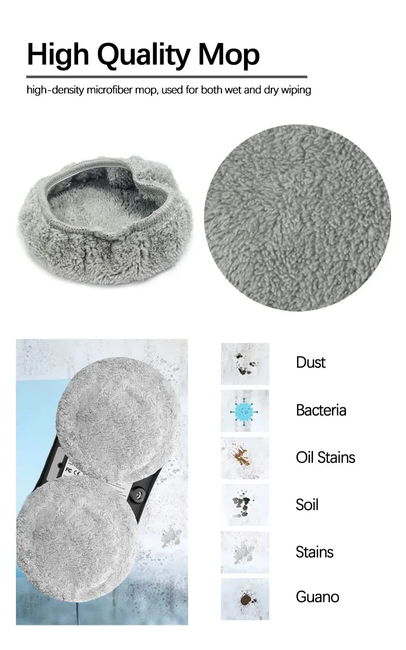 2. Keep the cleaning cloth slightly moist. Do not wet the cleaning cloth by soaking it in water, as this will cause insufficient negative pressure on the machine and prevent it from running stably on the glass.)