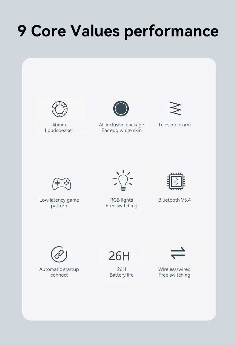 MZYDM Over Ear Headset Bluetooth5.4 Wireless Stereo Gaming B500 Earphones Built-in Mic RGB Light Low Latency Headphones For PC