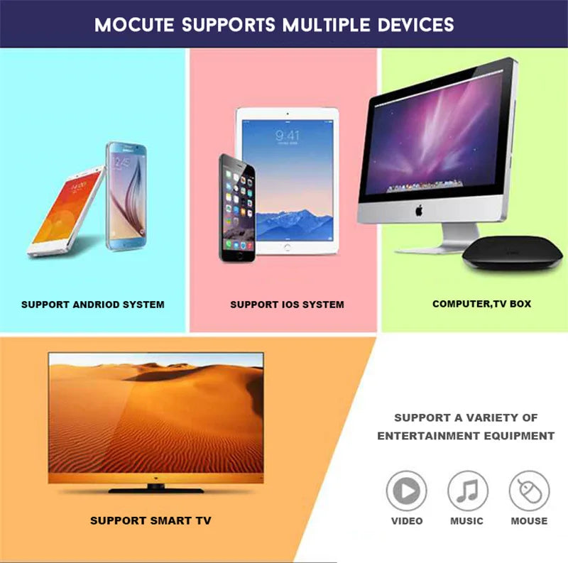 European, wireless mouse, music control buttons, VR helmets games, support for Apple (IOS) system, Android systems.Delicate touch ultimate control