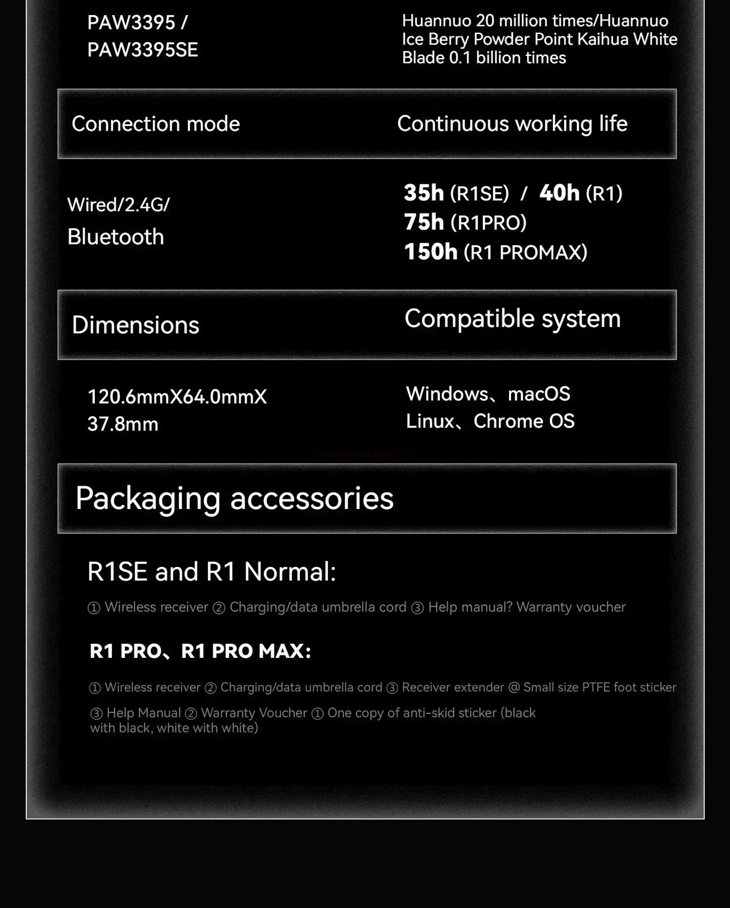 Model: R1 SE/R1/R1 Pro/R1 PRO MAX
